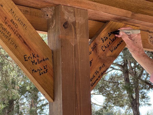 | They have a tradition here that all visitors get to sign a post on the gazebo. So that's what we did. |